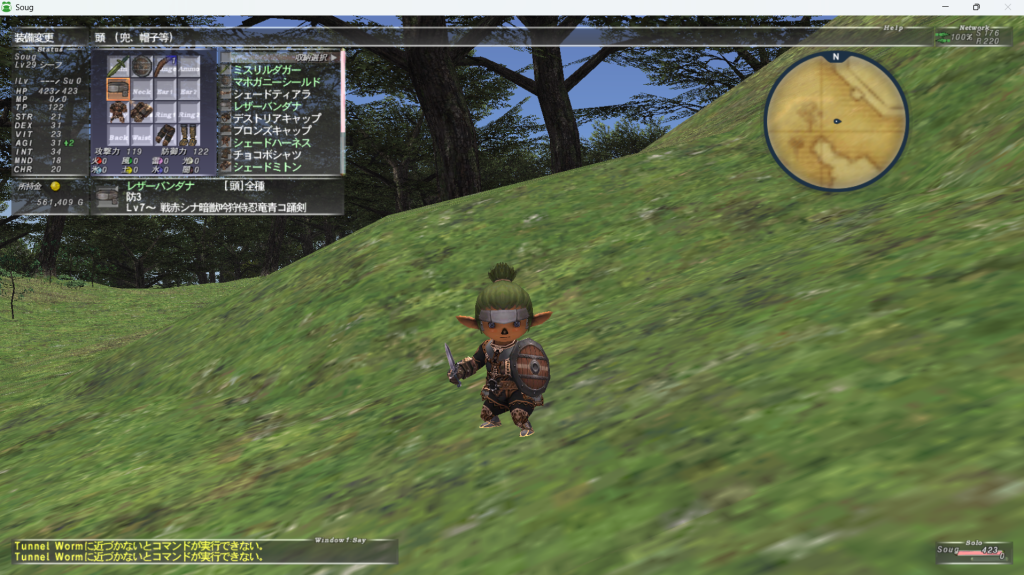 - 頭装備が Leather Bandana (レザーバンダナ)に変わる