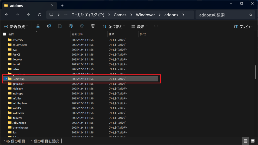 STEP7:GearSwapのフォルダを確認する(PC側)