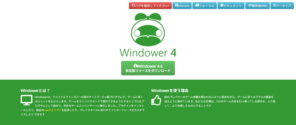 「Windower 4.6 安定版リリース」をダウンロードします。